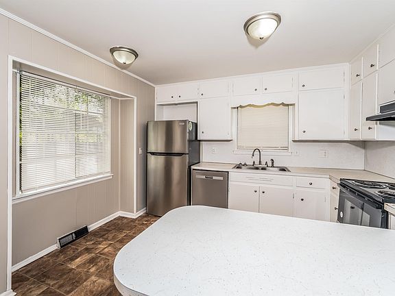 Great starter home under $100K! Make this 3 bedroom 1.5 bath house into a home. Eat-in kitchen has space for a table plus bar seating with stainless appliances. The brick fireplace is the focal point of the living room. Enjoy the fenced-in backyard, perfect for pets and entertaining friends. WELCOME HOME!