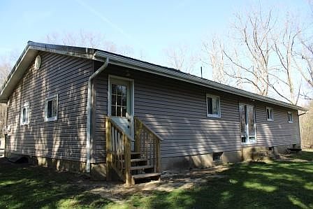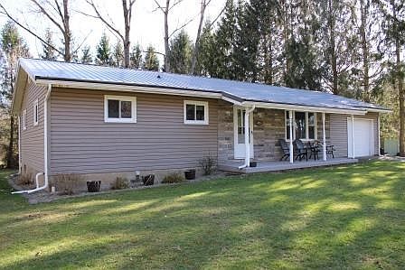Situated at the end of a no through traffic street, this 1,196 sq ft, three bedroom, 1 1/2 bath, single level home features a completely remodeled kitchen in 2020 from top to bottom with updated stainless appliances, attractive wooden cabinets, deep sink, complementing laminate floors and dining area with sliding door leading to the oversized 0.74 ac lot. Living room is quite roomy with large picture window bringing the outdoors in. Down the hall are the three bedrooms with hardwood floors, full hall bath and master bedroom with attached 1/2 bath. Other recent improvements include window replacement, metal roof, bath updates, garage overhead door replacement and addition of gutters and downspouts. The full basement is ready for more finishing if desired but already functions as hobby space. Seller not making decisions until after 5 pm on Friday 4/14. Taxes are $1848.