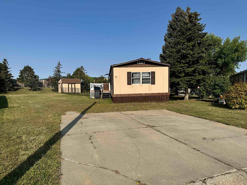 Great opportunity to own your own home at a low cost. Located currently in the Woodridge Mobile Home Park in SE Minot near shopping, restaurants, and quick access to HWY 83 and HWY 52. Enjoy living in a cul-de-sac with light traffic, a nice size yard with a fence sectioned off for pet lovers and a large shed for your storage needs. The deck offers space for outside entertainment and relaxing. This home offers a large living room with a wood burning fireplace and an eat in kitchen with plenty of cupboard space. Down the hall you will find additional storage and the washer and dryer that will stay with the property. The spacious primary bedroom is at the end of the hallway with a full bathroom and large closet. The bathroom has a new bathtub, surround, and fixtures. Most of the walls throughout the home have been recently painted, new flooring in the kitchen, and all new door knobs on interior and exterior doors. Sept. of 2023, the pipes under the home were newly insulated and newer metal sheeting and trim around the home was installed. Lot Rent would be $610 (garbage, sewer) and $65 for water bill. Call a realtor today to view this home today.