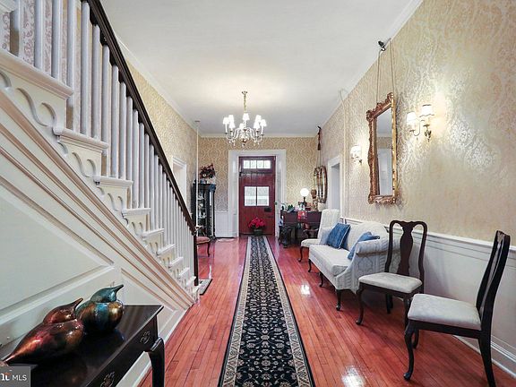 Rare opportunity to own Berkeley County's Oldest Home and the second Oldest Home. Aspen Hall features the Manor house of around 7,000 square feet and a historic cottage steps away. Built around 1750, Aspen Hall sits on 7 park like acres along the Tuscarora Creek, offering great trout fishing. The Georgian style home is known for its beautiful grand hall, sweeping spiral staircase, stunning brick molding, and inviting Victorian style. Three imported chandeliers highlight the welcoming front porch. Aspen Hall boasts 6 generously sized bedrooms and 7 bathrooms, along with a mother-in-law apartment that is currently leased. The Manor house has triple brick inner walls, 11 foot ceilings, 5 panel doors, period appropriate high end wallpaper in Grand Hall and all three floors of the staircase, designer paint, imported chandeliers inside and out, working vintage Victorian radiators with newer boiler, vintage clawfoot tubs. The custom built kitchen with original butler's pantry and custom made tugboat sink. The second floor offers the Renter's pantry with fridge, toaster oven, microwave and dining area for guests. Stroll along the private brick lined patio, surrounded by a pergola and Victorian roses, as well as a gazebo. The cottage, built in 1755 features two bedrooms and bathroom, a full kitchen, and laundry. It is currently a successful Air B&B offering all the conveniences of home, tranquil setting with close proximity to shopping, dining, and commuting. Let's not forget the property's rich history with historic Mendenhall's Fort. Built around 1755, the fort can be found in Washington's journals. Aspen Hall played many historic roles throughout the centuries including the French and Indian War, a hospital during the Civil War, and host to George Washington on several occasions. Location is a huge benefit of Aspen Hall. One block from the MARC train, one block from the police and fire department. And minutes away from Historic Downtown with great restaurants, cafes, entertainment, and the new and exciting Woven Mills project.