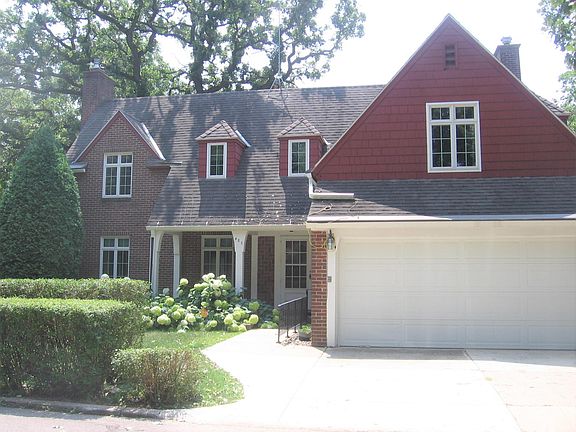 Quaint, elegant 4-5BR Cape Cod on .43-acre SW lot close to schools, park and downtown. This stately home as two masonry fireplaces, natural woodwork, formal dining room, large eat in kitchen, main floor bedroom or sun room, owner's suite and four baths. This spacious home has many custom built ins throughout the home, a lower level family room, huge workshop/laundry room, patio, deck and pretty yard. The attached garage is heated, there's central air, newer windows throughout and the exterior is mostly brick with wood shakes. With wonderful curb appeal, this unique home will be perfect for any family, regardless of size or age.