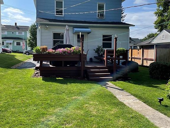 Lots of work done to this home....Beautiful Oak kitchen w/ lots of cabinets, 1st floor laundry and 3/4 bath, two heating sources, oil and gas use the one you prefer, nice front porch and rear deck, detached two car garage w/ storage above, leaf guards on gutters, certified pollinator garden, beautiful landscaping