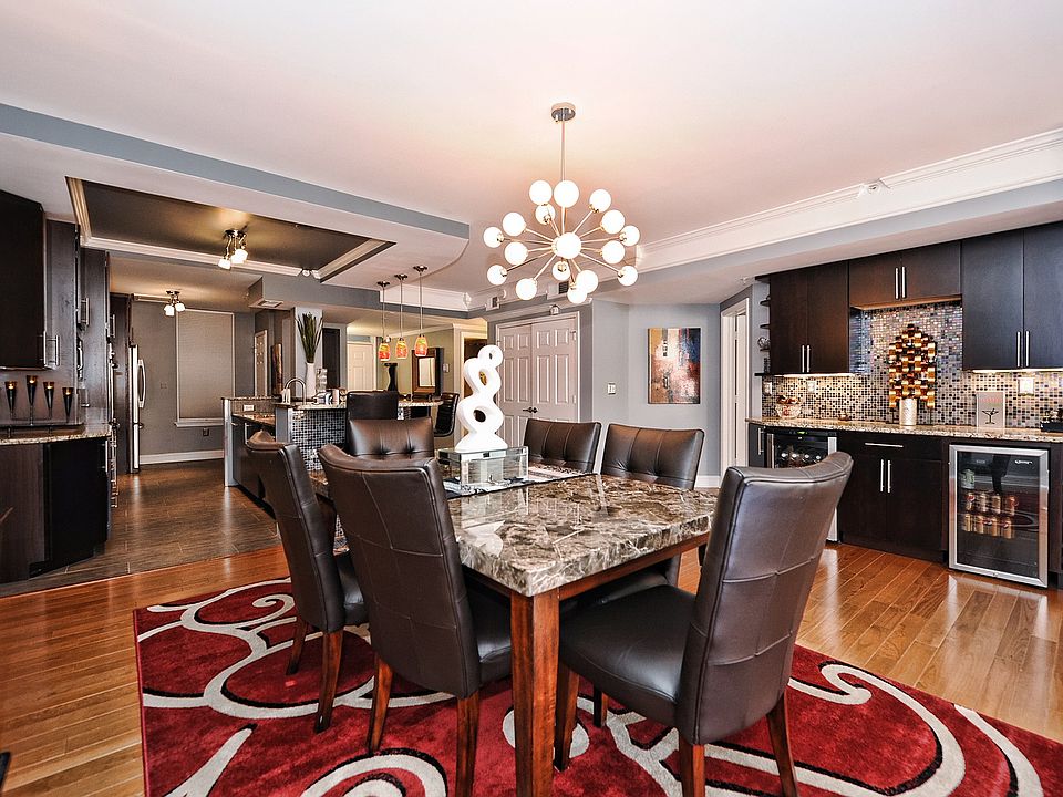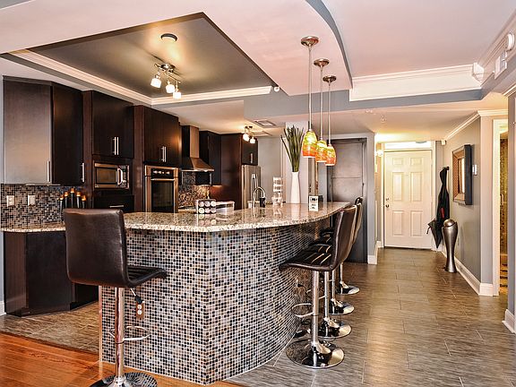 Overlooking 4th Ward Park. An amazing opportunity to live in this custom condo embedded in Uptowns most celebrated neighborhood. The unit offers a generous layout that has been extensively updated with contemporary conveniences. Stunning kitchen features Bosch double convection wall ovens, Bosch gas cooktop, raised island. Baths have heated tile floors, TVs, Shower jets etc. Seductive master with sitting area offers Uptown views. Residents benefit from rooftop terrace with seating /grills, controlled access and Harris Teeter across the street. See features sheet. Bottom line, dont miss this one! Seller positioned for an expedited closing. Features 405 W 7th Street unit #210 – Park Plaza - Custom-designed kitchen: dark cherry cabinets with soft-close drawers, inside- and under-cabinet lighting and roll-out drawers, Bosch stainless steel double oven and gas cooktop with vent hood; super quiet Bosch dishwasher with delayed timer; under mount sink with upgraded, quiet disposal; French door refrigerator; tons of granite; huge raised island with enough room for 7 stools. - Massive, open floor plan with separate built-in granite bar complete with GE Profile wine chiller and beverage center, under-cabinet lighting. - 65" flat screen with motorized wall mount in living room automatically adjust for the best viewing angle when TV is turned on. - Modern fireplace with custom surround and gas logs. - Unreal master suite with walk-in custom closet and plenty of room for a king size bed - 55" flat screen nook and desk. Wall-mounted fireplace. - Solid hardwoods throughout and custom modern tile designs in kitchen and both bathrooms. No carpet and no laminates. - Newly renovated, modern bathrooms have televisions with remote controls, programmable heated tile floors, shower panels with jet option, heated towel racks, dual flush toilets, and quiet exhaust fans. Master bathroom has bidet. - All closets have been renovated with dark shelving. - Upgraded lighting fixtures throughout. - Upgraded faucets throughout. - Upgraded door hardware throughout. - Upgraded ceiling fans with remote controls throughout. - Custom wood moldings and baseboard. - Custom, remote-controlled automated shades. - Installed Energy Recovery Ventilation system that moves the indoor air to the outdoors. - Newer (2011) HVAC furnace and outdoor unit with programmable thermostat that displays outdoor temperature and controls humidity inside. - Building has a secured garage, elevator, and rooftop terrace with gas grills with great skyline views. - Location of the unit is tops for convenience to elevators, trash chute, and moving in. - Even the laundry has custom cabinets and lighting. - Views of Fourth Ward Park and BofA tower from the living room and master bedroom. - Harris Teeter across the street and CVS, and restaurants only blocks away