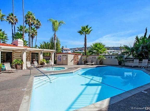 Ocean & white water view end unit. Popular Villa Granada complex which has recently been updated. End unit with views out of every window! Gated courtyard entry with custom slate, nice open floor plan, beamed ceilings, dining room wall mirrored with beams & ceiling fan, two real wood paneled walls in LR, recessed lights, gas fireplace, granite bathroom and kitchen counters, upgraded appliances include a dual drawer dishwasher, mirrored wardrobe doors in every bedroom. New (2020) composite ceramin flooring throughout living area and new plush carpet in bedrooms. All new trim and custom painted kitchen cabinets. Master suite has built in corner bed set up with extra built in cabinets, master shower upgraded with stone look tile, frameless glass shower door & rain shower head. Plantation shutters. Large sliding glass door to private ocean view balcony. One of the few units that has 2 designated parking spots both with built in storage. Community pool, spa, rec facility with fireplace & kitchen owners can reserve, ocean view roof deck with BBQ's. Villa Granada is in a great pier bowl location ~ close to beaches, pier, downtown shops and restaurants!
