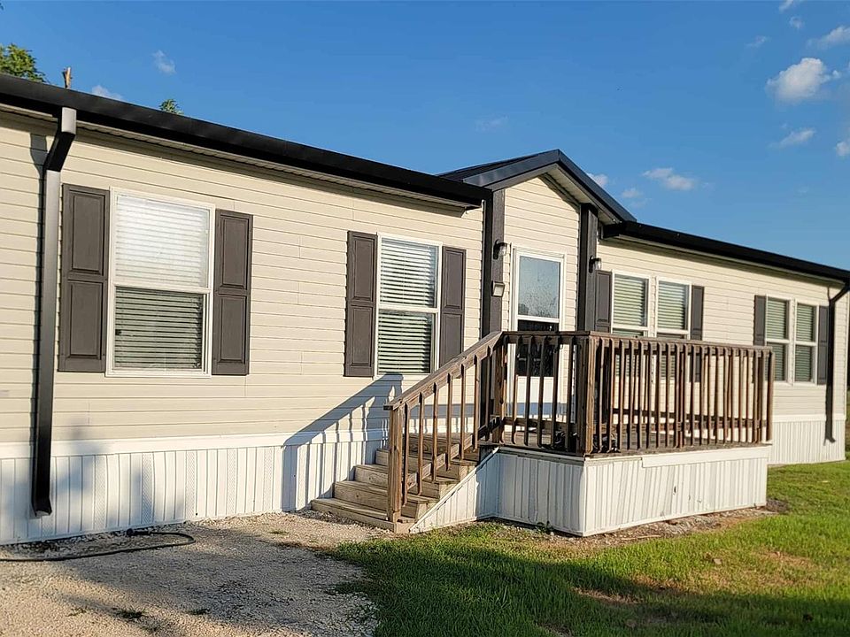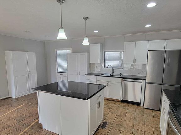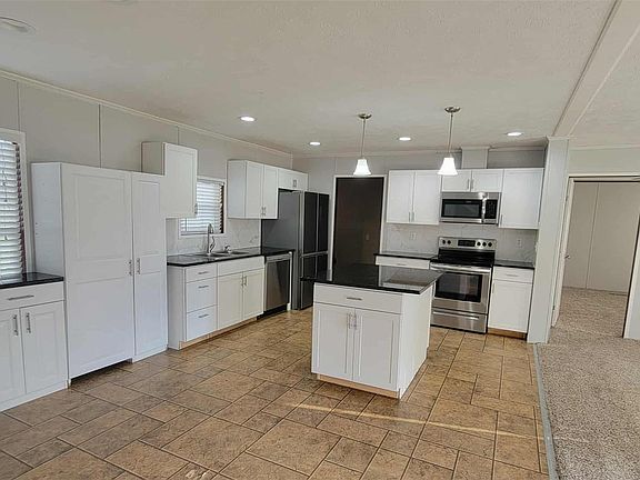 Gorgeous Manufactured home in an unrestricted neighborhood in Highlands. This lovely 4 bedroom 2 bath home comes with a spacious open concept living/dinning combo, kitchen includes all appliances, Stainless steel refrigerator, dishwasher, microwave & stove with oven, inside utility room. Kitchen Island included and lots of cabinets. Good size bedrooms with spacious closets. Recent carpet throughout, tile floors in kitchen and bathrooms, includes 2 nicely build porch's for front and back & back porch is a covered porch. Lots of space to park in front & back of home. This property sits on a 3 acre trac which is shared with two other homes on the same land. The Entrance is a shared driveway to enter to the back. Don't miss the great and private living space. Must act now it will go fast!!