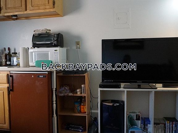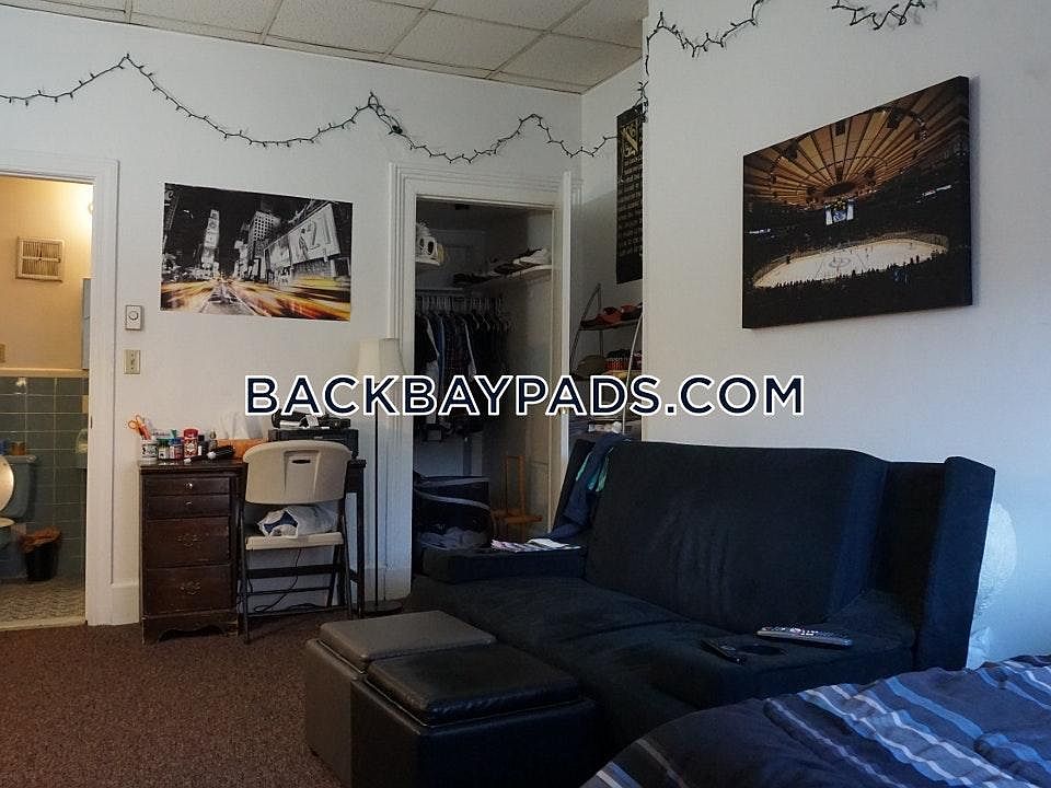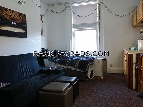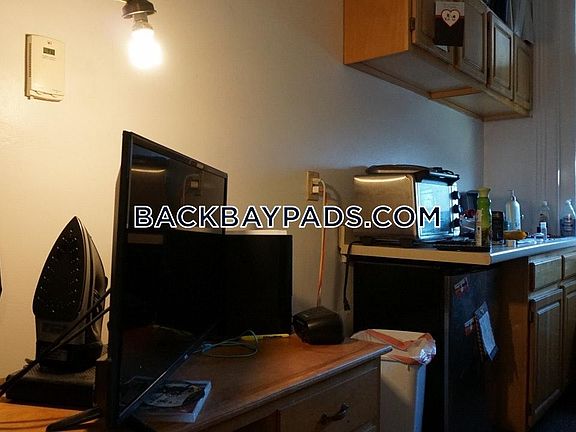 Charming studio in Brownstone in the Back Bay. High ceilings with plenty of sunlight located on third floor with private bathroom. Wall to wall carpet. Kitchenette with two burner cook top. Hot water included.