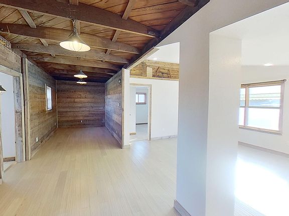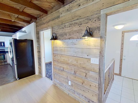 Welcome Home to this Charming home with so much character! Many Updates! The open main level features vaulted ceilings with wood beams, barnwood finished walls, and engineered hardwood flooring. This is an old boxcar turned into a home. Galley kitchen with newer white cabinets and stainless steel appliances. Enjoy 2 bedrooms on main level (one with a loft area). Full bathroom on main with tiled surround. Basement level features a bonus/family room and lots of storage space or opportunities for a work area. Detached garages (240sqft) and shed (196sqft). Come Take a Look. You will Love the Charm!