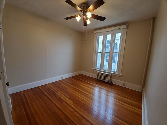 Available now! Amenities: First floor unit, upscale and spacious, desirable neighborhood. Two designated off street parking spaces with snow removal in the winter. Two bedrooms, double parlor dining and living room with electric fireplace, bay windows and gorgeous parquet wood flooring. Updated kitchen with stainless steel appliances and granite counter top. Large front porch. Original hardwood flooring and vintage light fixtures throughout the apartment. Nest smart thermostat and brand new "on demand" water heater installed. New Maytag washer and dryer in the basement for all tenants to use free of charge. Unsecured basement storage available. Electric and Gas Heat paid by tenant, Landlord pays water/sewage. Landlord responsible for landscaping and snow removal. No smoking allowed in the apartment. Sorry, no pets. REQUIREMENTS: 1st months rent and equal security deposit required for move in. Before tax monthly income must be at least 3X monthly rent (must provide proof). Minimum credit score of 650 required. Zillow application (which includes background check, credit report and eviction history) required for all adult applicants before approval. Tenant can choose six month or one year lease. Please message to schedule a showing.