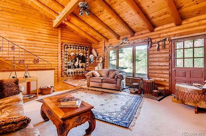 Come home to a masterfully constructed 4 bed 4 bath log home on 23 lush, gentle acres, and including a barn & domestic well. Used as asuccessful VRBO, it is beautifully appointed and maintained throughout the interior and exterior of the home. It has two master suitesincluding one super-suite with a 5 piece bath & access to a large deck. Everything about this home is comfortable. And it entertainswonderfully. The grounds include a year-round stream with a waterfall running through the front yard and a large barn with an unfinished1100 square foot loft that could potentially become an auxiliary living unit. The exceptionally convenient location allows you to reachdowntown Denver in 20 minutes and ski slopes in only 45 minutes. 17 acres are deeded separately and have access to a separate well that can be domestic or commercial. GREAT potential for a commercial venture or an extended family compound. House & barn on 6 acres can be bought for $955k. 17 acres land alone for $755k