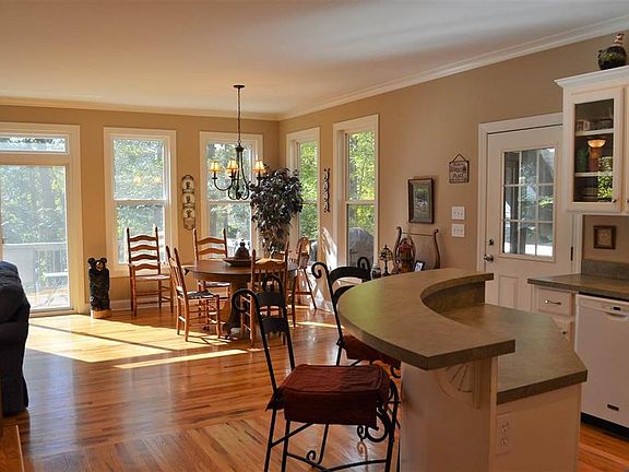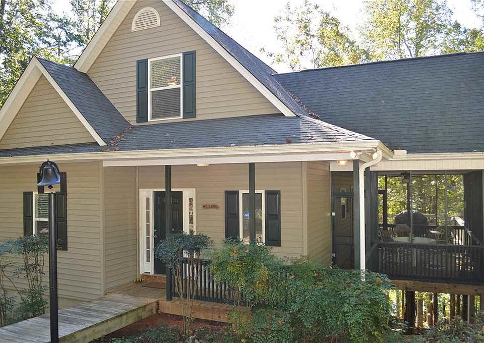Enjoy low maintenance waterfront living from this comfortable, move in ready retreat. A subtle mix of lake cottage and mountain getaway, this home features spacious gathering space with tons of windows that fill every room with natural light accenting lake views. In a wooded setting, a path leads to protected shoreline, a deep water covered dock, upper level seating and a unique side platform for canoe launches and little swimmers. A home you will remember for those great lakeside BBQ's and memorable waterfront entertaining. With a true wrap-around porch, unwind on the screened portion large enough to be used for your choice of additional living space, dining space or the family's every day relaxing space. The main floor features hardwood floors throughout, a stone wood burning fireplace and, the highlight of successful family gatherings, an open combination of living, dining and kitchen. Add to the hideaway experience by sneaking upstairs to two spacious guest bedrooms and a full bath. The terrace level adorns a fourth sizable bedroom and third full bath along with a secondary recreation space perfect for coming in from the lakeside and housing extra guests. Additional storage can be found inside for rafts, skis or even an extra fridge. There are several spots that lend options for future garage space, boat storage or a growing family addition. Comfortable enough to make a special home away from home, a value unique enough to make your very own. *Note Investors: Weekend and weekly rentals are permitted in this area, rental history available upon request.