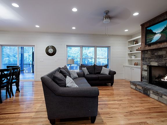Step into luxury and comfort with this custom-built home. Private, level 1.63-acre lot with a walking trail provides a serene retreat amidst natural beauty. Enjoy spacious, dual-level screened-in porches with tongue-and-groove ceilings and tile flooring on the upper level. Inside, solid white oak floors add sophistication, complemented by recessed lighting throughout all indoor and covered outdoor spaces. Additional features include charming shiplap throughout the entire first level which adds character and a connection to the outdoors. Natural gas, utility water, and fiber internet ensure comfort and connectivity, while the heated and cooled attached garage allows a quiet working space. With no HOA, you have the freedom to enjoy your private haven, or transform it into an attractive short-term rental. Located just 5 minutes from Four Seasons Marina and a short drive to Sligo and Pates Ford Marinas on Center Hill Lake, this home offers the perfect blend of serenity and convenience.