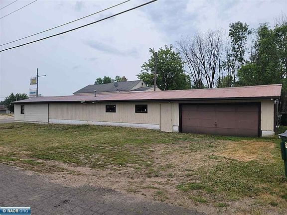 Single story property in a great location near downtown Nashwauk! Great frontage on main street, with very high traffic and visibility for business and advertising! Many features including: natural gas heat, metal roof, new shingles on garage, floor drain in front area, separate office area, garage door access in back of building, separate garage on the side street/alley, and more! Currently zoned commercial.