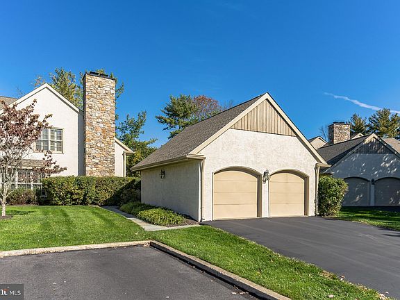 Effortless living awaits at this beautiful turnkey townhome nestled in sought-after Waynesbrooke East. Offers due Sunday, Oct. 23rd 4pm. From the front lawn, a flagstone path winds through a gated picket fence and past the detached two-car garage to reach the covered brick porch. Inside, light streams through skylit cathedral ceilings, highlighting the gleaming hardwood floors underfoot, neutral paint and many custom moldings. Just off the foyer, an archway frames a sunken family room with sliding French doors leading to the wraparound rear deck. The family room connects to a sunny dining room with oversize picture window, updated lighting, custom moldings and scenic backyard views. Just steps away sits the bright, well-equipped kitchen with newer stainless-steel appliances, granite countertops, recessed lighting and another set of sliding French doors for easy outdoor access. Down the hall, you’ll find the first-floor primary suite featuring a glorious window wall with plantation shutters, dual closets and renovated ensuite full bath. Accessed via a beautiful barn door, the primary bath boasts a slate tile floor, built-in shelving and oversize shower with frameless glass door. A powder room, oversize laundry closet and soaring living room with wood-burning fireplace (that could easily function as a home office if desired) complete this bright and airy first floor. A newly carpeted staircase leads to the second level, where you’ll find two spacious, light-filled bedrooms, each with ample closet space. One bedroom boasts double doors leading to a cozy loft with custom built-ins that overlooks the first floor living room. The second floor also includes a full hallway bath and walk-in storage closet that runs nearly the entire width of the home. Out back you’ll find an open-air oasis complete with sprawling wraparound deck, stone privacy wall, mature trees and flat greenspace. For stress-free living and peace of mind, the neighborhood HOA handles all exterior maintenance, from snow removal, grass cutting and tree trimming to driveway sealing and roof and stucco repairs. The community also boasts its own pond and walking path while offering convenient access to downtown Paoli and Berwyn. Zoned for top-rated Tredyffrin/Easttown School District. Wonderful opportunity.