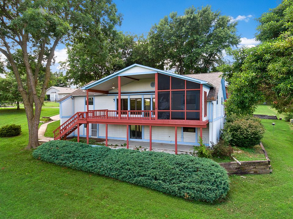 Tucked away at the end of the lane overlooking Quail Ridge Golf Course in Grove Oklahoma you will find this charming home waiting for you! You will enjoy lake views that improve as the seasons change, from the lower patio or upper balcony, with an additional screened in room on the upper level. With 4 bedrooms, 2 full baths, 1 half bath, and plenty of space throughout, this house provides endless options for growth! House has an attached two car garage, and a fenced area for the pets. This property includes a boat slip with hydra-hoist, located on the other side of the golf course at a private marina. This peaceful property is perfect for the recreational lifestyle and is move in ready, give us a call today for your private showing.