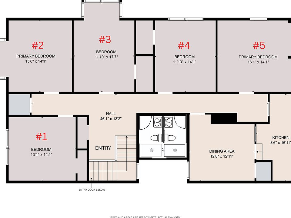 5 bedrooms, each with double doors for noise reduction (We can also remove one door per bedroom.)