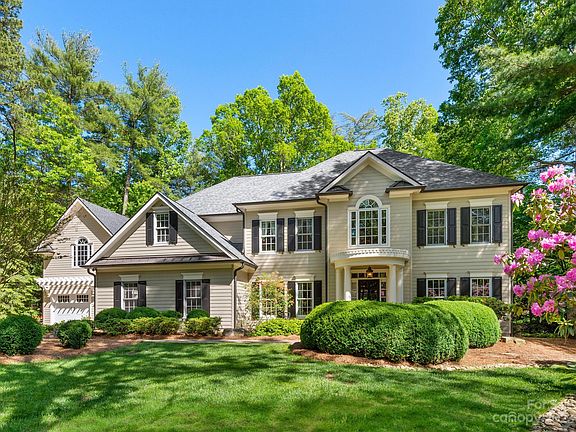 Stones throw to area schools, Biltmore Park Town Square, and trails, this picturesque South Asheville legacy property sits on a lively and fun cul-de-sac, awaiting its next owner. Indoor/outdoor living at its finest! From the bench-lined drive and manicured landscape stroll through the arched breezeway into the park-like backyard enveloped by towering hemlocks, massive hardwoods, and evergreens. Enjoy a fire pit, paver-crafted patios, a southern-living-style screened-in porch, and an expansive sun deck. Inside is an entertainer's layout with 9 ft ceilings, triple-crown molding, a large wood-burning fireplace, built-in speakers, butler pantry & service bar. The large primary bedroom features a sitting room, a new European-style bathroom with a walk-in glass shower & classic fixtures. The left wing, with a full kitchen and bath, provides the ideal entertainment/media room, office, or guest suite options. Enjoy a favorite wine from your 500+ bottle temperature-controlled wine cellar!