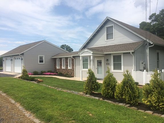 Country location. Originally built as a schoolhouse & retains some of its historical features. 10 foot ceilings on first floor. original wood floors, wainscoating & blackboard. Now on to the modern. Remodeled kitchen with granite counters, newer appliances, central air, ceiling fans, remodeled bathrooms, closets, deck, breezeway, 2 car garage, sidewalks, porch, standby generator, etc. First floor consists of foyer, living room, dining room, kitchen, office, breezeway with sliders to yard & entrance to garage, laundry, hall bath, bedroom & french door to deck. Second floor has 2 bedrooms and hall bath. Outside you'll find a large deck partially covered and large yard to enjoy. Owner takes care of mowing yard and plowing driveway. Tenant is responsible for heat (oil hot water baseboard) , hot water, electric, trash & propane for generator. Lease is for 6 months & then month to month.
