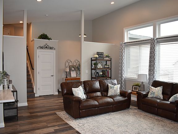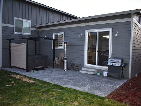 Built in 2018, this home is a contemporary home built by Larson Home Builders. Captivating and fresh design with attention paid to every detail all in a neutral and gray palette. Open great room with 13 foot ceilings and large windows to maximize the view. Corian counters, stainless back splash, Black S/S appliances, walk in pantry. Master suite offers a free standing soaking tub, glass surround & tile shower, walk-in closet and view of back yard. Family room with daylight windows and surround sound for the true theater experience. Full bath off laundry room with folding table. Floors are all tile, luxury vinyl plank and carpet. Other interior features include: A/C, Hepa furnace on demand hot water, wiring available for electric car. Fully landscaped with full sprinklers and lawn. Stamped concrete patio off the dining room allows the entertaining to be taken outside. Included is a hot tub with salt system and a metal gazebo. A large storage shed is located at the rear of a large graveled parking area large enough for boats, RV's or extra vehicles.
