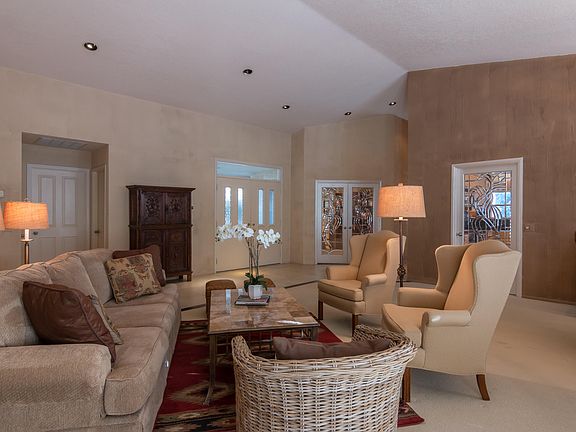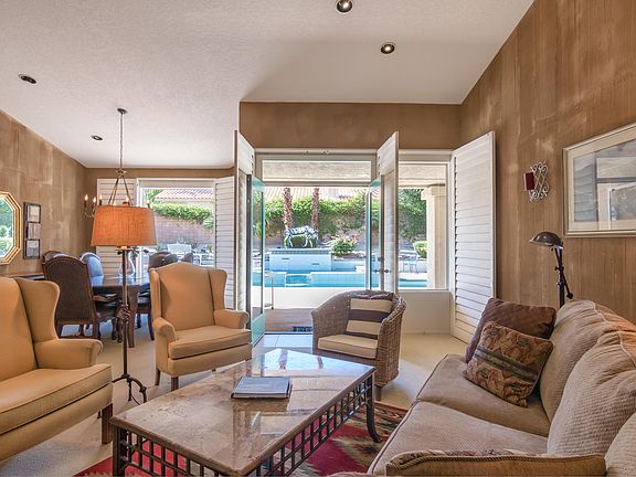 As the largest single level and most desirable floor plan in The Links, this home has been beautifully remodeled inside and out with custom pool and landscaping. The remodeled kitchen includes stunning granite, pull out shelves, stainless appliances, and shuttered windows. Large master suite offers a relaxing atmosphere with cozy fireplace and French doors which open to the inviting backyard. The master bath boasts remodeled shower, granite countertops, and tile flooring. Custom, beveled glass doors to master suite, den/4th bedroom, and kitchen. The Jack and Jill guest bath has been recently updated. The stunningly landscaped backyard offers a lap pool, large spa, custom waterfall. The backyard ambiance is enhanced by sculptures which include a vertical fountain by John Richen valued at $12,000 and zebra sculpture by world renowned artist, Oscar Pumpin. Additional upgrades in this 4 bedroom/3 bath, 3 car garage home are included in the attached document. The Desert Falls Links community is conveniently located mid-valley; within walking distance of retail, groceries, and dining. Homeownership includes front landscaping, tennis, and fitness. Desert Falls CC is semi-private.