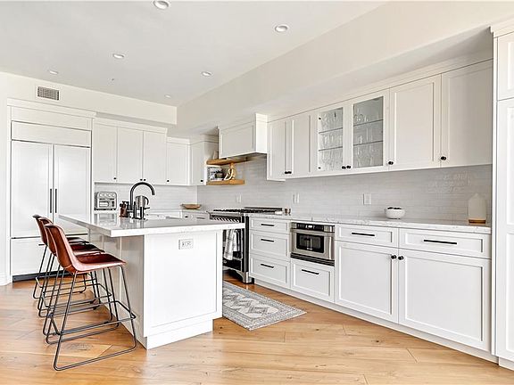 Located at the end of a cul-de-sac, this fully remodeled three-bedroom home has nearly 2400 square feet among unobstructed Harbor and ocean views. Highlighted by high ceilings and wood flooring the kitchen provides ample cabinetry, superlative appliances, 8-burner range, sprawling stone counters, and kitchen island with breakfast bar and views. With an elevator accessing all living levels, each bedroom boasts a private balcony and bathroom one with a built-in Murphy bed, private entrance and garden terrace replete with an infrared sauna. The spacious primary suite has stunning water views, retreat with fireplace, private balcony, and ensuite spa like bath with separate soaking tub, dual vanities and walk-in closet. A large rooftop deck supplies a built-in barbecue, counterspace, and sink among stunning views of the water, city, and trees. 2 car garage parking with built-in storage and an EV charger. Proximity to local shops and restaurants, and the Goldenrod Footbridge -providing quick beach access. Located at the end of a cul-de-sac, this fully remodeled three-bedroom home has nearly 2400 square feet among unobstructed Harbor and ocean views. Highlighted by high ceilings and wood flooring the kitchen provides ample cabinetry, superlative appliances, 8-burner range, sprawling stone counters, and kitchen island with breakfast bar and views. With an elevator accessing all living levels, each bedroom boasts a private balcony and bathroom one with a built-in Murphy bed, private entrance and garden terrace replete with an infrared sauna. The spacious primary suite has stunning water views, retreat with fireplace, private balcony, and ensuite spa like bath with separate soaking tub, dual vanities and walk-in closet. A large rooftop deck supplies a built-in barbecue, counterspace, and sink among stunning views of the water, city, and trees. 2 car garage parking with built-in storage and an EV charger. Proximity to local shops and restaurants, and the Goldenrod Footbridge -providing quick beach access.