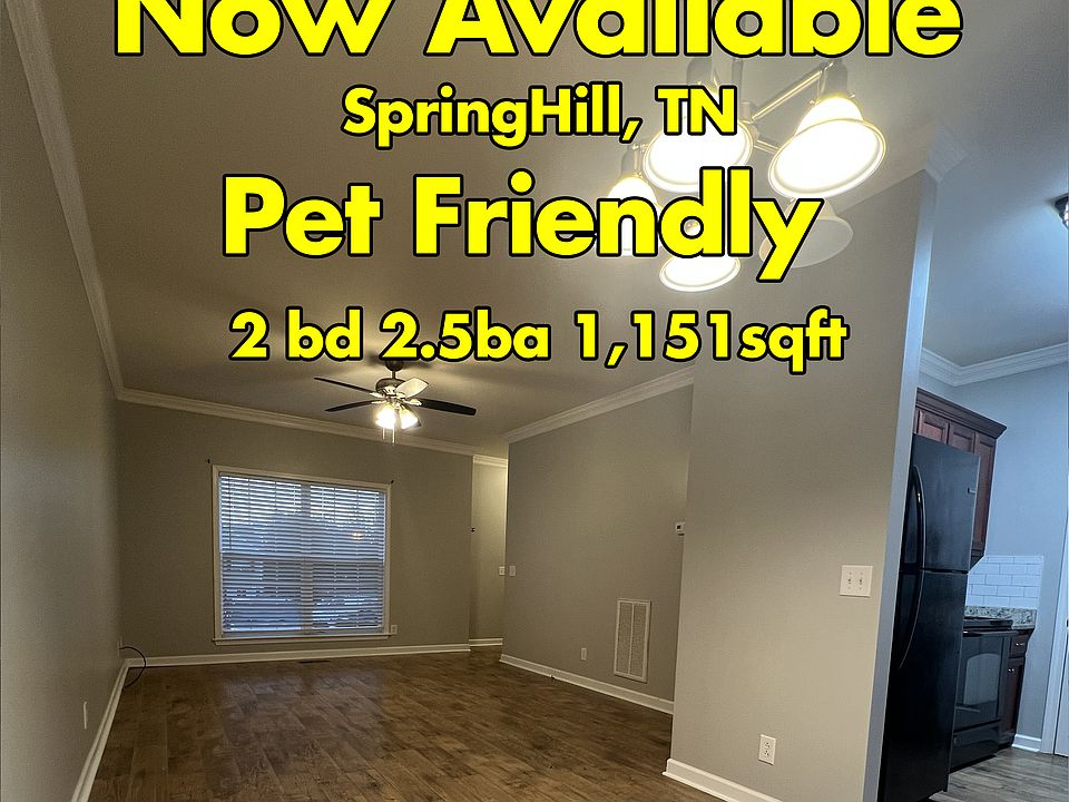Your New Home Awaits in Spring Hill! Step into this beautifully renovated townhome located in the vibrant and growing Spring Hill community. Freshly painted in warm, inviting colors and designed with thoughtful details, this home is ready for you to move right in. The spacious great room features elegant crown molding and modern flooring, with a unique hidden worktable and storage for modern convenience. The kitchen shines with granite countertops throughout, complemented by a stylish tile backsplash, and is perfectly positioned next to the living space for easy entertaining. A convenient half bath on the main level is ideal for guests, and you'll love having in-unit washer and dryer hookups for everyday ease. Upstairs, you'll find two large master suites each with its own full bath and generous closet space offering comfort and privacy for every lifestyle. Enjoy access to the community pool just a short walk from your door, and take advantage of the neighborhood's many shopping and dining options. Families will appreciate nearby elementary schools and the highly rated Williamson County Community Center, just minutes away. This townhome combines modern upgrades, thoughtful design, and a prime location making it the perfect place to call home. 405 Dakota Dr, Spring Hill, TN 37174-8501, United States Renter responsible for Utilities, 1st Month Rent and Security Deposit Due at signing. Pets allowed, add 250 non-refundable deposit for pet cleaning after lease expiration. Pets are an extra fee over lease amount. All applicants will be screened Full lease terms will be discussed before signing.