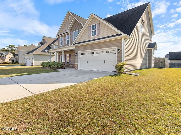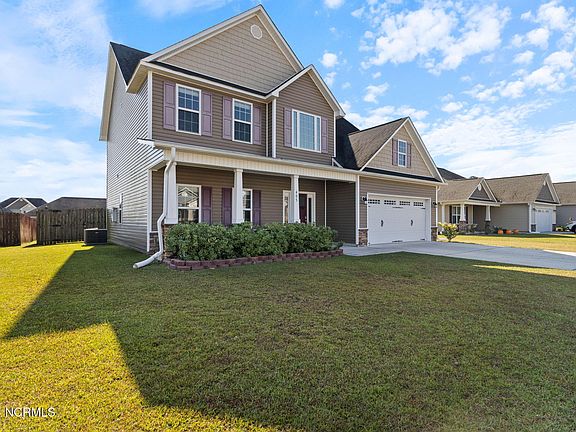 Discover what Coastal Living is all about! $5,000 seller paid closing cost assistance is being offered on this beautifully maintained home featuring 4 bedrooms and 2.5 bathrooms. This home is just minutes away from North Topsail Beach, restaurants, and shopping. Access to Camp Lejeune, Stone Bay, and Marine Corps Air Station are all within 25 minutes. The kitchen has ample cabinet space, stainless steel appliances, and overlooks the main living area. There you will find an electric fireplace, perfect for the upcoming chilly evenings. Upstairs is the large primary bedroom with an en suite bathroom that includes a separate shower, soaking tub, and a walk-in closet. The other 3 bedrooms, a full bathroom, and the laundry closet are also located upstairs. Outside you will enjoy the covered porch with a spacious fenced in backyard, perfect for entertaining or for savoring our beautiful Eastern Carolina days and nights. Schedule your private showing today!