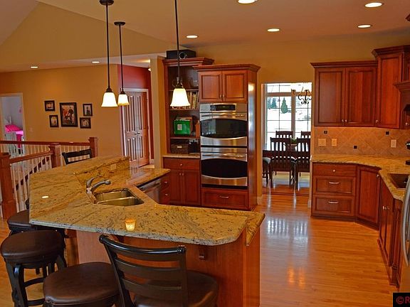 Lovely and spacious ranch with wooded area on the side and back! Beautiful and private back yard with stone patio, mature trees and wildlife. Super open floor plan with cathedral ceilings, pillars, and transom widows for lots of natural light. Custom built and energy efficient. Designer kitchen offers 42" cherry cabinets, granite tops, double oven, neat tile accent and an enormous snack counter. Quality-birds eye maple flooring, a handsome fireplace framed with built ins, open stain to lower level, archway to the formal dining room and main floor laundry. 14' x 20' screened porch off the kitchen with vaulted ceilings. Master bedroom suite has his and her vanity, jacuzzi tub and is LARGE! Heated tiled floors in all baths. Guest room/office behind the garage. Over sized triple garage, gutter helmets and attractive exterior. Radiant heat in lower level. Nice family room with day light windows. This home has over $500,000 into it. Great location. *Any Offers to rent this home on craigslist are a scam and should be flagged for removal*