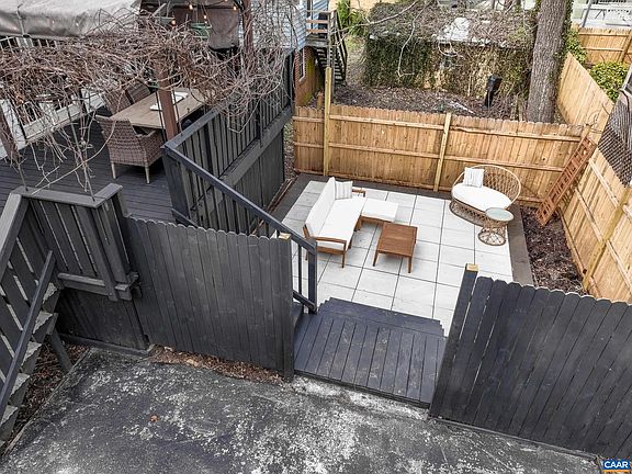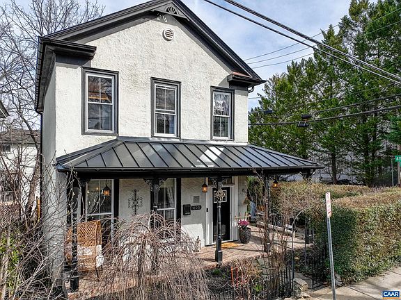 Lovingly remodeled farmhouse in the heart of Charlottesville! Walk to the downtown mall and all of your favorite restaurants. This home features luxurious upgrades while still maintaining the original charm and distinctive features. You'll love the heart of pine floors, high ceilings and thoughtful design choices throughout. As you enter the home the cheery foyer boasts ceramic tile floors, and built-in storage. The large living and dining rooms on the main level are great spaces for entertaining! The dining room features a custom-built wine/coffee bar and new light fixture. Chefs will love the light-filled fully remodeled kitchen with painted cabinets, granite countertops and thoughtful design choices. Multiple outdoor entertaining spaces in the rear of the home including a deck and private patio, add to the functional living spaces. Upstairs, the primary bedroom features two large closets and renovated private bathroom with heated tile floor and walk-in shower. Two additional bedrooms share an updated hall bathroom. Stacked laundry is located upstairs for convenience, and pull-down attic stairs lead to a floored storage space. Outside, the wrap-around front porch leads to a private courtyard, and two off-street parking spots.