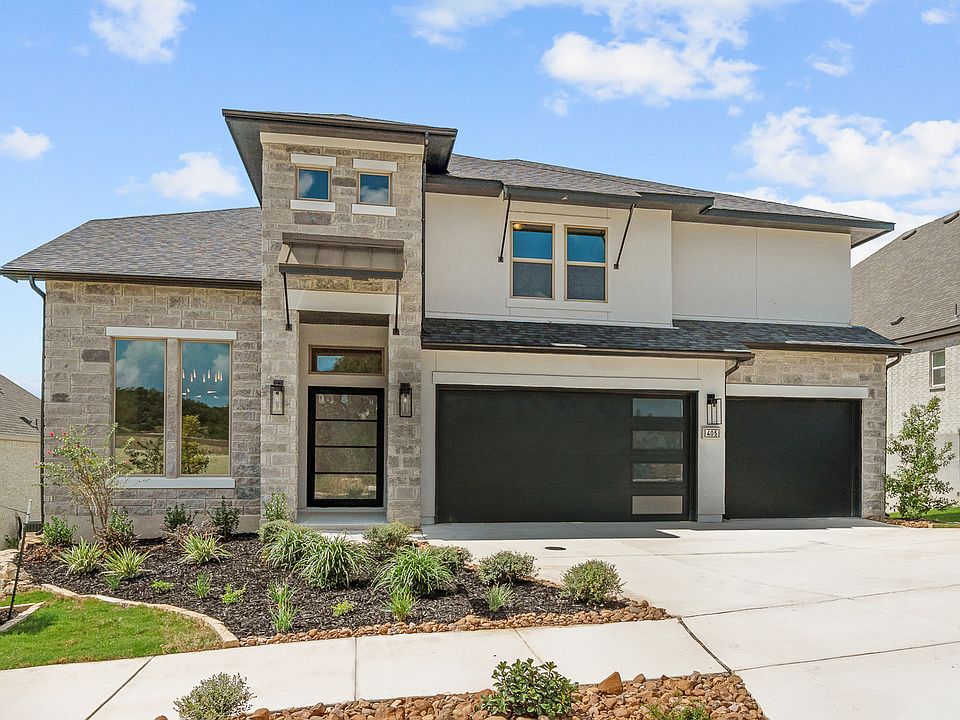 MLS# 1881575 - Built by Drees Custom Homes - Ready Now! ~ Grace and refinement define this stately Boerne residence, where timeless design meets the ease of modern living. Nestled on a private homesite framed by mature oak trees and backing to open space with no rear neighbors, this home offers both grandeur and seclusion. Inside, the thoughtful layout balances elegance and function. The primary suite and an additional secondary bedroom rest on the first floor, complemented by a private study and versatile flex room. Upstairs, three oversized secondary bedrooms and a spacious game room create a luxurious retreat. Entertaining flows effortlessly with an oversized pantry, custom cabinetry, and built-in wet bars that evoke a sense of refinement. The living spaces open to a large covered patio with an outdoor fireplace, inviting gatherings that linger late into Hill Country evenings. A 3-car garage provides ample room for vehicles and storage, while every detail throughout the home-from fine finishes to architectural touches-speaks to enduring quality. Situated within Boerne's premier masterplanned community, with resort-style amenities and highly regarded schools, this residence offers the sophistication of old-world charm woven seamlessly into Hill Country living.