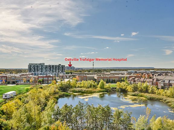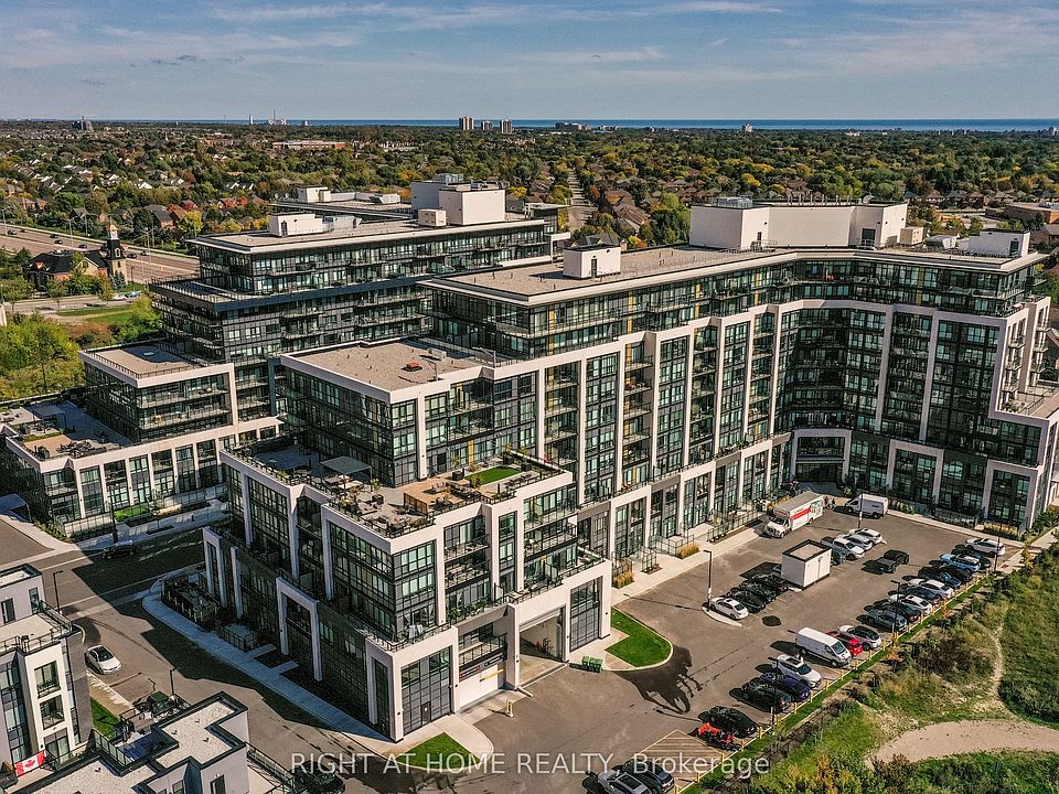 Welcome to this 1 year new, 2 bdrm condo at Distrikt Trailside In Oakville. Boasting a stylish modern condo with award winning interior design finishes PLUS a unique & spacious 261 sq. ft. Executive Suite Terrace w/Gas BBQ Hookup, ideally located near Oakville Trafalgar Memorial Hospital, Sports Complexes & a short drive to Lake Ontario & Hwy 407. Designed with High Ceilings & Open Concept. A luxury kitchen by Trevisano, made in Italy with Island seating for 4 & Quartz countertops as well as European laminate cabinetry materials & Stainless Steel Appliances. 15' ceilings offering tons of natural light throughout. Primary Bedroom Overlooks Terrace. Custom Built In Cabinetry in 2nd Bedroom as well as in-suite laundry. The building boasts tons of amenities including a Pet Spa, Concierge/Security in Main Lobby with lounge areas, a Fitness Studio, including 6th Floor Resident Amenities with Billiards Room, a Chef Kitchen w/private Dining Room as well as a separate lounge w/fireplace extending to the expansive outdoor Rooftop terrace featuring a fully equipped outdoor prep and grilling space, a trellised dining area and several lounge areas offering beautiful views of Oakville, Lake Ontario & surrounding areas.