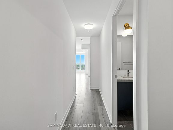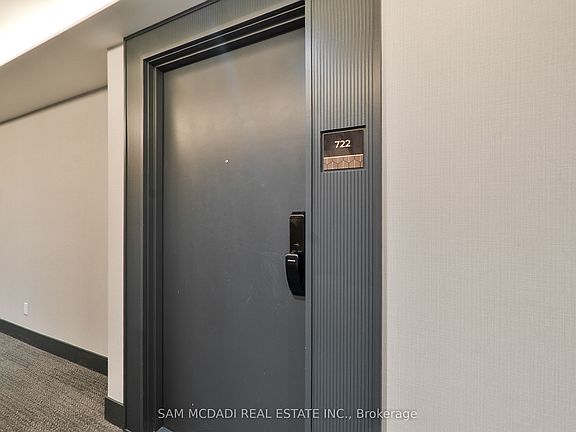 Welcome to Distrikt Trailside in North Oakville, perfectly placed to give you the best of Oakville. This spacious 2-bedroom, 2-bathroom condo offers approximately 744 square feet of well-laid-out interior living space. With south-facing views and large windows, the unit is filled with natural light throughout. The open-concept layout includes a sleek kitchen featuring laminate and glass cabinetry, soft-close drawers, porcelain tile backsplash, full-size appliances, and a custom island that adds extra prep and seating space. The primary bedroom includes an ensuite bathroom, while the second bedroom is ideal for a guest room, nursery, or home office. Additional features include 9-foot smooth ceilings, in-suite laundry with a full-size washer and dryer, and a smart home system with a digital door lock and wall-mounted touch screen panel. One underground parking space and one storage locker are included. Residents have access to a stylish lobby, fireside lounge, rooftop terrace with barbecues, chefs kitchen and private dining room, games room, double-height fitness studio, yoga and Pilates areas, pet wash station, parcel storage, and bike storage. The building also offers a 24-hour concierge and on-site management for added convenience. Enjoy a short commute to downtown Oakville, Glen Abbey Golf Club, Whole Foods, Oakville Trafalgar Hospital, and major highways including the 403, 407, and QEW. Scenic parks and trails are nearby, along with access to recreational, cultural, and sports facilities. With close proximity to top-rated schools and leading medical services, everything you need is within easy reach.