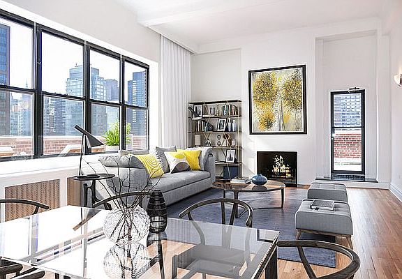 Starting at $9950.00 per month. Very unique and spacious two-bedroom Penthouse apartment with wrap around terrace, two fire places in the living room and master bedroom. This apartment home also features a brand new kitchen with granite counter tops, stainless steel appliances, dishwasher, microwave, bathrooms with marble tiles and new hardwood flooring throughout. With giant closet space, very high ceilings--over 12" feet and breathtaking views of the city, this apartment has it all! Electric, heat and water is all included in the rent too. Please call to make an appointment.