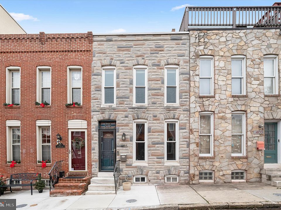Welcome home to 405 E Clement Street, ideally located in the heart of Federal Hill. This charming residence seamlessly blends classic Baltimore character with modern updates and conveniences. Step inside to a bright and airy living room featuring beautiful hardwood floors, an original fireplace, and custom built-ins. The stunning hardwoods continue through the main level into a spacious, separate dining room—perfect for entertaining. The updated kitchen boasts crisp white cabinetry, granite countertops, a classic subway tile backsplash, and stainless steel appliances. Completing the main level is a full bathroom with laundry for added convenience. Step outside to the expansive rear patio with privacy fencing, offering endless possibilities—host gatherings with friends and family, create your own urban garden, or fire up the grill before a Ravens game. Upstairs, the primary bedroom offers a built-in vanity/desk and a large, light-filled walk-in closet. The beautifully renovated upper-level bathroom features dual access, with entrances from both the primary bedroom and the hallway. A second bedroom, filled with natural light, includes a generous closet, along with an additional storage closet on the upper level. With easy commuter access, a quiet street with ample parking, and modern finishes throughout, this Federal Hill gem is truly move-in ready and has it all.