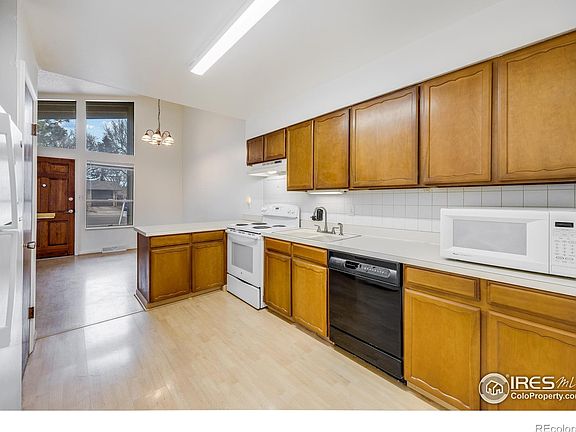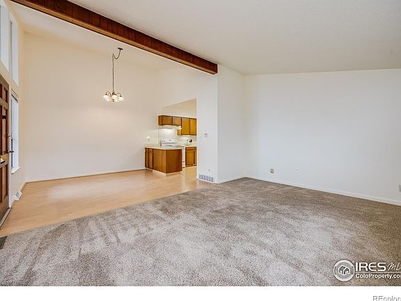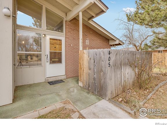 BACK ON THE MARKET!All brick ranch townhome offering oh so much for the money! Contemporary updates and that spacious, airy feeling. Vaulted ceilings, , an eating bar, pergo floors. Large bedrooms, light & bright bathroom w/walk-in shower, detatched garage. Separate laundry room with full wall of cabinets, a crawl space, & easily accessible attic for no lack of storage space! Private patio & yard, garge including community park in rear are steps away. Close access to Fort Collins bus route MAX. Great for college students. Central A/C.