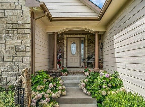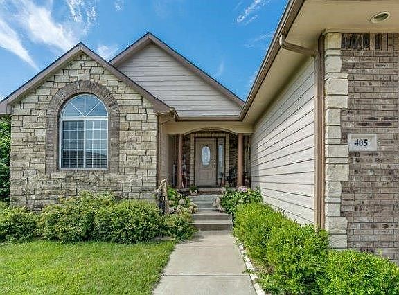 You need to take a look at this beautifully designed 4 bedroom, 3 bath, viewout ranch home in the gently rolling subdivision aptly called Merlins Glen. With its stone and brick front and other exceptional amenities - tiled hearth area and see-through-into living room gas fireplace, French doors into your master suite, hidden pantry -- you can easily walk out to your covered wood deck and walk-down to your privacy fenced back yard. Private water well and sprinkler system will assist in keeping your lawn and landscaping ever so lush! Desirable split bedroom plan plus the 4th finished bedroom downstairs! Private wet bar area tucked nicely away but with a full view of your finished basement rec room! Add to this a second fireplace (stone front) in the southwest corner and you'll be set for friends, family, and entertaining! Open kitchen area features a walk through laundry and really easy access from the 3 car garage! Special Assessments end in 2019 so make your move now! Within walking distance of schools and superb access to Rock Rd either north towards McConnell Air Force Base or South!