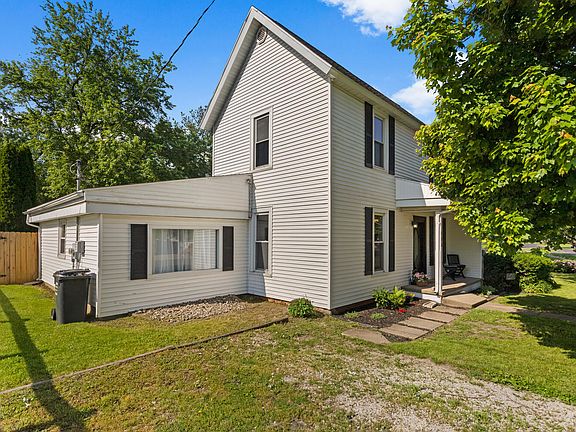 This charming property in the desirable unit 7 school district has been thoughtfully transformed from a cozy 2 bedroom, 1 bathroom retreat into a spacious 3 bedroom, 2 bathroom haven. The master suite provides a functional layout with great closet space! Step inside to discover a tasteful blend of modern design and classic charm, highlighted by a sophisticated white and black color scheme throughout. This property is sure to please with it's low taxes and countless updates that highlight the open concept & raised ceilings. Nestled on a generous fenced in double lot, this home boasts an expansive living space and ample room for outdoor enjoyment. Outside, two outbuildings offer endless possibilities for storage, workshop space, or even a private retreat. One of the outbuildings is equipped with cable and electric, making it the perfect spot for a home office, studio, or entertainment space. Preinspected & ready for new owners!