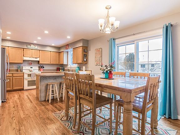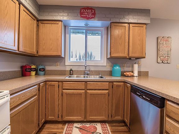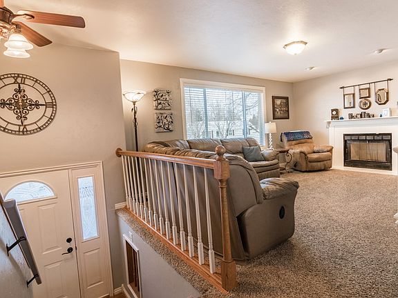 This well maintained split level home, located on a cul-de-sac, has hard wood floors that are newly refinished. The HUGE sunny living room sports a wood burning fireplace for those winter nights, & wraps into a GORGEOUS kitchen with a breakfast bar, and a eat in breakfast nook! Patio sliders open to a big vinyl deck, fenced yard & gardens with sprinkler system surrounded by mature trees in a quiet neighborhood. Basement laundry has lots of storage. Upstairs is a living room, 3 large bedrooms, hall bath, a master suite with plenty of closet space & a divided vanity area for the bathroom. The basement has a wood stove, and 1 more bedroom- with a bath! Making this a move-in ready home, very close to the school. Come see for yourself!