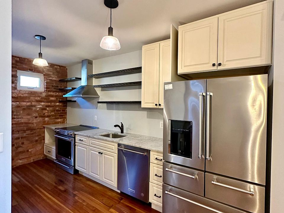 Welcome to 405 East State Street in Media! This beautifully updated three bedroom home is walking distance to downtown Media. Enter from the charming front porch through the original front door with full length sidelights to a spacious living room. The large arched doorway flows to the dining room with good natural light. Refinished original hardwood floors throughout will lead you to the open kitchen with new cabinets, custom woodworking bar shelves, marble countertops and new stainless steel appliances. Enjoy a spacious, cozy and private outdoor living space with a new patio, perfect for all your entertaining needs. Upstairs you will find the master bedroom and 2 other sizable bedrooms and an updated hall bathroom. In every room you will find a space efficient closet that was designed by California Closets. There is a large unfinished basement for laundry with a washer and dryer, and room for personal storage. This well cared for home is located in the excellent Rose Tree Media school District as well as walking distance to the shops, restaurants and bars, all of what downtown Media has to offer. This location also offers convenient access to major highways, the Philadelphia Airport, and center city Philadelphia! Don't miss this opportunity in Media Borough! Please contact us today and schedule an appointment to come see this great living space. Tenant pays all utilities. This is a smoke-free building. First month and security due at lease signing. Applications will be required. House comes unfurnished. House is available July 2025.