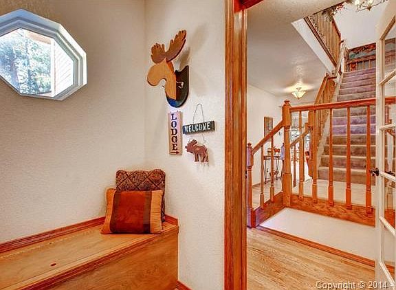 Meticulously maintained two story home nestled in the tall pines of Arrowwood on 2.72 private acres. Features include; functional open floor plan with spectauclar grand staircase, great room off kitchen with gorgeous wood burning fireplace, gourmet kitchen boasts hardwood floors, center island, double ovens, Electrolux cook top and large walk-in pantry, formal dining room w/bay window, office on main with French doors, with built in desk, drawers and shelving, lovely 9 ft ceilings on main and lower level, vaulted master bedroom w/sitting area, gas fireplace & walk out to private deck, walk in closet, spacious and vaulted master spa with dressing vanity, raised counters, jetted tub and dual head walk in shower, two additional upper level bedrooms w/vaulted ceilings, finished walk out lower level w/family room, wood burning fireplace, game room, wet bar, two additional spacious bedrooms, full bath, & storage areas. Vinyl windows installed in 2008, security system and wired for surround sound in great room, 2x 6 construction, 7 ft doors,whole house generator, two new water heaters, hot water circulation system, water softener, oversized 3 car finished garage, circular driveway, underground electric dog fence and an Rv Pad. Dont miss this one! Listing Agent: Jean Wheaton Company: RE/MAX Properties, Inc. Phone: 719-440-2499 Email: Jean@TheWheatonTeam.com