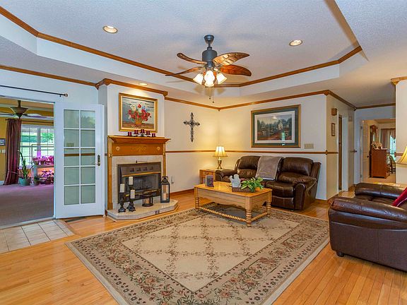 Welcome to Eagle Pointe Estates. This wonderful four sided brick home is the first thing you see when entering into a neighborhood filled with amenities such as community pool, tennis court and boat launch. The beautiful 3 bedroom, 2 1/2 bath all one level living sports a flat one acre lot with trees offering just the right amount of shade. There is a detached pavilion area that serves as both storage and an entertainment space with the built in bbq. There are tray ceilings in the master bedroom, hard wood floors, a large three car garage, jacuzzi tub, and a spacious laundry room.