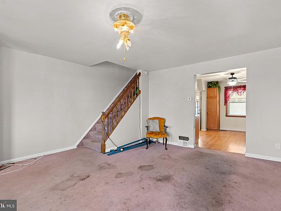 MULTIPLE OFFERS RECEIVED***OFFER DEADLINE - SATURDAY, FEB 18 @ 10:00AM **** Well-maintained interior row home in Essex is available for your personal touches. Enter the home from the covered front porch and be greeted with the open floor plan of the main level. There is the original hardwood floors under all the carpet in the property waiting to be refinished to their natural beauty. The open kitchen and dining area feature 42" solid wood cabinets, Corian counters and sink, and stainless steel appliances. Upstairs features two well-sized bedrooms, and a smaller bedroom and full bath. The fully finished basement has a rec room, laundry room, and a second full bathroom. New water heater 2023. One parking spot in the back via the alley access and a fully fenced yard.