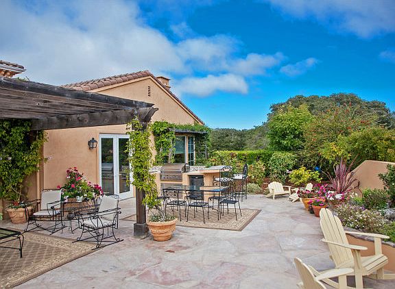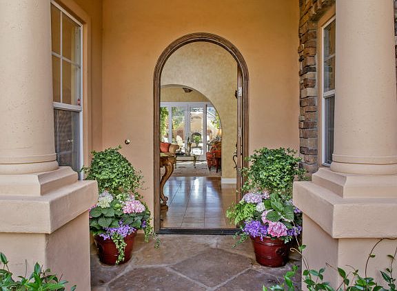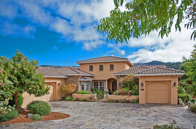 Beautiful one story Mediterranean home on very private professionally landscaped half acre in sunny Pasadera. The home has 4 bd., 3 1/2 baths, library, office, ground floor master suite with his and her closets, family room with a chef's kitchen and breakfast area. The master suite, library, kitchen and great room look out at the stone terrace complete with fountains, pergola and built in grill.