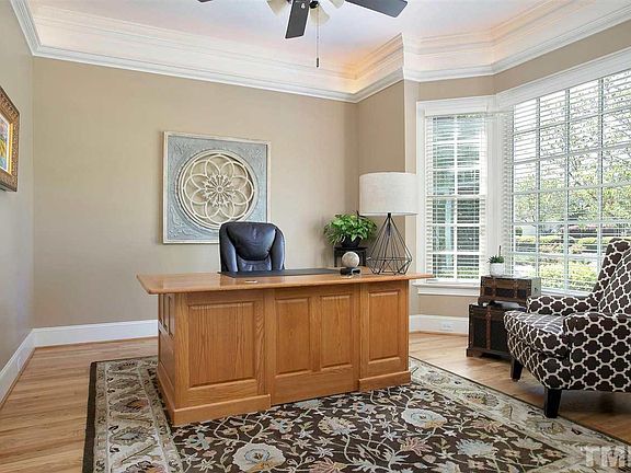 Stunning custom all brick home in desirable Cary location. This home has it ALL! Exceptional open floorplan w/1st floor features Master Suite, Guest Room w/full bath and separate office. Gleaming hardwoods and high-quality craftsmanship throughout. Enjoy luxurious "resort-like" living in your own private backyard oasis w/unbelievable heated saltwater pool & spa, cascading waterfalls, fully-equipped outdoor kitchen and extensive land/hardscaping - the perfect place to relax and entertain. Each bedroom has a full en-suite bathroom and walk-in closet.