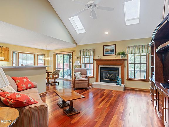 Discover the charm of simple coastal living in this solid custom built home at 405 Fern Creek Lane. Enjoy the convenience of one-level living! The living area features cherry hardwood floors, creating a cozy and low-maintenance atmosphere. Stay warm during cooler evenings with the gas log fireplace, adding a touch of comfort to the heart of the home.