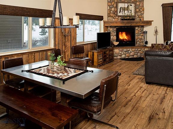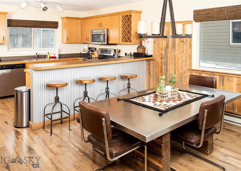 This remodeled end unit chalet with a loft is poised to help you take advantage of the Big Sky lifestyle. Hardwood floors, upgraded appliances, a hot tub, new fixtures and handsome furnishings make this residence stand out from the others. The comfortable layout features an open kitchen, dining and living area, with each of the 3 bedrooms having an ensuite bathroom. The loft, completed by a foosball table, is a fun extra gathering space. With mountain and meadow views, backing to open space, it is ideally located. The chalets are a great residential community with amenities including trails, a playground, and a shuttle stop to Big Sky Resort, within a mile of Big Sky Town Center and on the BSCO trail system.