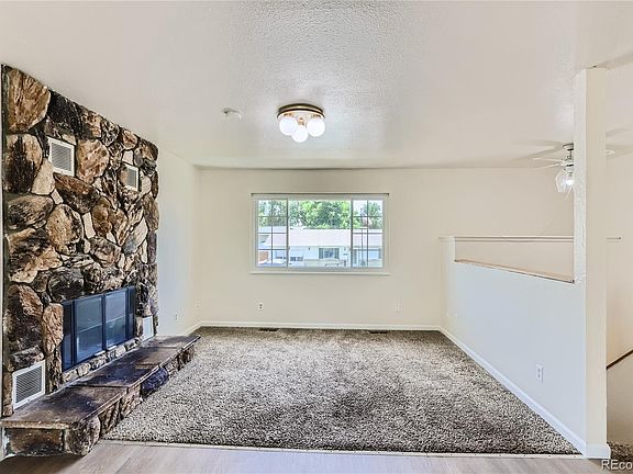 - Description: Carpet, Fireplace With Floor-To-Ceiling Stone Surround, Open To The Dining Room & Kitchen