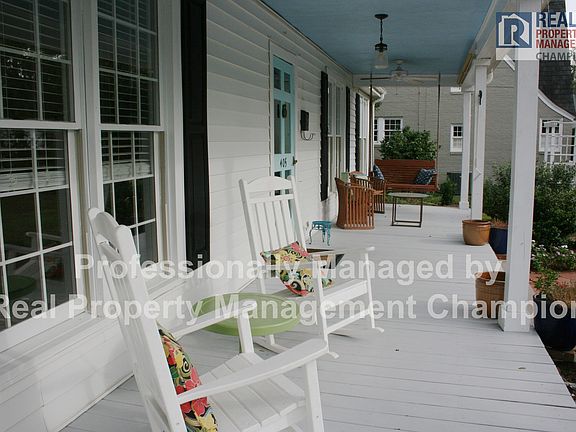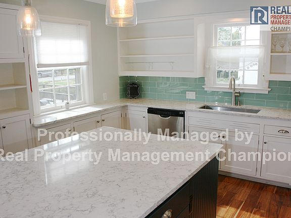 Located in prestigious Forest Hills neighborhood just two miles from the heart of downtown Wilmington. This 4 BD/2 BA home combines the vintage charm of the neighborhood and modern updates with wide plank hardwood floors and beautifully updated kitchen and baths. The covered front porch spans the width of the house and includes two ceiling fans and shades for you to relax in comfort. The welcoming living room has a cozy fireplace and direct access to the sunroom with its three walls of windows. The kitchen offers generous counter space and storage with the large center island that includes a breakfast bar. You will love the high-end updates that include an extra-large under mount sink, quartz counters, decorative glass tile back splash and stainless-steel appliances. This open kitchen design with adjoining eating area is ideal for entertaining. The laundry room has tile flooring, access to the backyard and includes front loading washer and dryer and a half fridge. The main level Master bedroom features French door entry, ceiling fan, and built-in shelving with cabinets. The second bedroom offers sunny windows overlooking the backyard. Both bedrooms have direct access to hall with butler's pantry which would make an ideal coffee bar for early mornings. The main floor bath has tile flooring, pedestal sink, tub/shower combination with tile surround, beadboard ceiling, and wall cabinet for storage. The third bedroom, located on the upper level, could be a second Master bedroom. It includes shiplap walls, dormer windows, ceiling fan, and large walk-in closet with built-in shelving and drawers. The fourth bedroom has a built-in desk area and could be a great craft or play room. The upper level bath has tub/shower combination with tile surround, shiplap walls, and new vanity, sink, and tile flooring. Additional features of this home include ample attic storage with easy access, fenced backyard, off-street parking, and storage shed. Conveniently located just blocks away from the neighborhood YMCA, Thomas B. Lilly and Wallace Parks, Forest Hills Elementary, and easy access to Market Street. No students or co-signers. No pets. No Smoking, e-cigarettes or vaping. We are an Equal Housing Opportunity Management Company and abide by the term of the Federal Fair Housing Act All applicants over 18 years of age are subject to a background check, including criminal, credit, employment verification, and past tenancy.