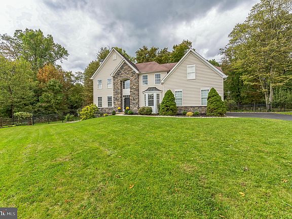 Welcome to this stunning home in picturesque Upper Gwynedd Twp. The brand new exterior of stone & lap style siding was completed in October! As you step into this center hall colonial you are greeted with an array of luxurious features & a spacious layout that's perfect for both daily living & entertaining. The 2-story foyer with turned staircase, 2 coat closets & gleaming hardwood floors creates a grand entrance. The elegant living room boasts a gas fireplace w/granite hearth, 9-foot ceilings, crown molding, & the same beautiful hardwood flooring found throughout the first floor. Adjacent is a study w/crown molding & HW floors that provides an ideal home office or library. The formal dining room is perfect for hosting dinner parties with its 9-foot ceilings, HW floors, crown molding, & French doors that lead to the gourmet kitchen through an atrium door. The kitchen is a chef's dream featuring stainless steel appliances including dishwasher, self-cleaning 4-burner with warming burner stove, refrigerator, double under mount sink with gooseneck retractable faucet & a reverse osmosis water system. The top grade, granite countertop along with the large center island is accented with equally beautiful glass tile backsplash. A pantry, 42 inch cabinets & engineered HW flooring complete this heart of the house. Off rear foyer is a powder room with upgraded vanity, granite & HW flooring, along with a laundry room featuring washer & electric dryer, cabinets, modern utility sink & an exterior door. Here you also find access to the oversized two car garage w/automatic door openers. The eat-in area of the kitchen is filled with natural light & open to the large morning room. Highlights here are HW flooring, a vaulted ceiling w/ lighted fan & sliding doors to patio. The warm & inviting 2-story family room is a breathtaking space with a floor-to-ceiling stone gas fireplace, eyeball lighting, a ceiling fan with light, palladium windows, hardwood floors, skylights, & a vaulted ceiling. It can be accessed from the front hall, study or kitchen. The main bedroom on the second floor is a retreat within the home. It includes a walk-in closet with a custom closet organizer w/overhead lighting, as well as carpeted flooring. The main bathroom is equally luxurious, featuring a Jacuzzi tub & a clear glass shower with dual shower heads (hand sprayer & rain forest). The bathroom also includes ceramic tile floor, limestone countertops, tub & shower surround (marble in 3 places around shower), a linen closet, double sinks with decorator bowls & splash-resistant faucets over a vanity with cabinets & drawers, & double mirrored medicine chests. The second floor offers three additional bedrooms, each with plush carpeting & double closets. The hall bathroom on this level is tastefully appointed with a quartz countertop, upgraded fixtures, ceramic tile flooring, & a double mirrored medicine chest. Recessed lighting enhances the space. The basement offers versatile space with an outside entrance, carpeting, recessed lighting, & a 36x34 finished room, along with a 20x12 unfinished area that can be customized to your preferences. Enjoy outdoor living in the partial aluminum fenced back yard, complete with a slate bluestone patio that's perfect for al fresco dining, relaxation, & entertaining. The entire property is surrounded with a perimeter split rail fence complete with raised “deer” protective fencing. Enjoy the beautiful self-maintaining hostas (may want to weed once a season) covering the rear of this large property. This home, located on a cul-de-sac on over an acre in award winning North Penn School District, has two zone gas heating (one for each floor), an extended driveway, an irrigation system, is close to major roads, shopping, services & public transportation (yes, the yard will take an in ground pool easily). 405 Forest Lane is a meticulously maintained & thoughtfully designed home that offers the perfect blend of elegance & comfort.