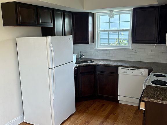 Step into this charming, fully renovated two-story duplex featuring two bedrooms and one bathroom. The home boasts appliances, including a washer and dryer, alongside a cozy living room, an inviting eat-in kitchen, and a functional basement. Enjoy the elegance of hardwood floors spanning both the first and second levels. Year lease