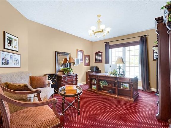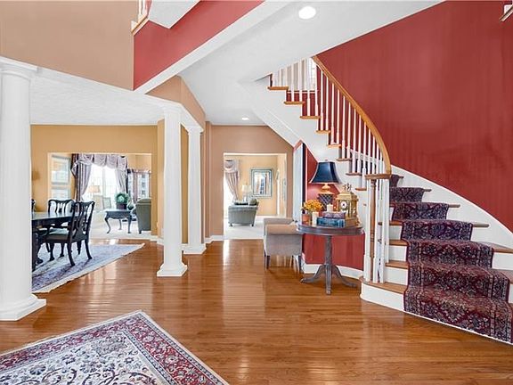 Exquisite residence with remarkable quality oozes in every aspect of the Jonlor Developments custom built provincial. Over 6500 square feet! Architectural detail is found outside and throughout. Thoughtful attention to detail and decor. A grand entry foyer features a circular staircase. Sundrenched living room and formal dining room. The bright and open gourmet kitchen with oversized Island, walk-in-pantry, white maple cabinets, stainless appliances, wine fridge and double oven leads to the family room with gorgeous rich hardwood floors and a gas fireplace. Expansive finished lower level is an entertainer's dream! Custom built oak fully equipped wet bar with beverage frig and convection oven, dishwasher, music/exercise room, gaming system paradise with 3 mounted tv's and built-in storage drawers and work desk. Abundance of storage rooms and custom cabinetry in the 4 car garage. Must see to appreciate numerous amenities. Ideal location.. 15 mins to PGH and airport.
